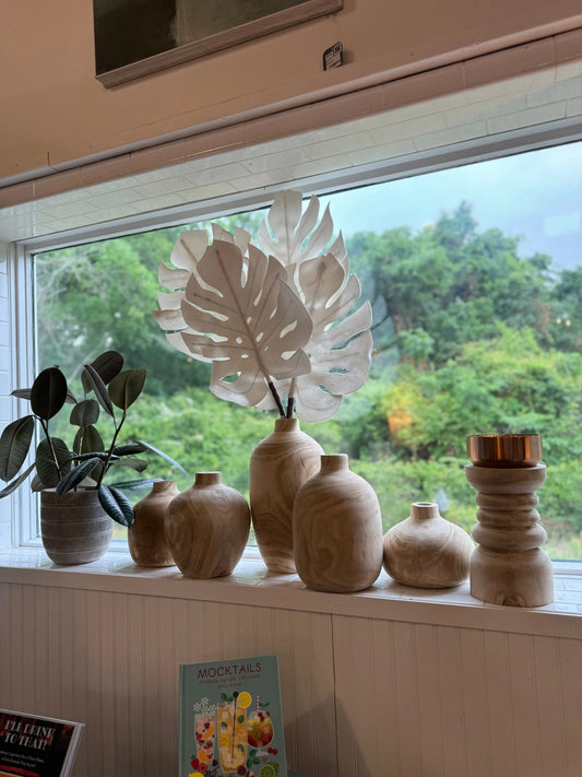 Carved Wooden Bulb Vases