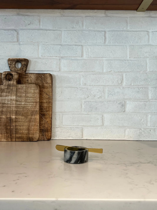 Marble Butter Dish with Metal Knife